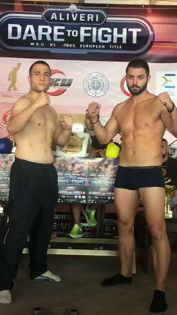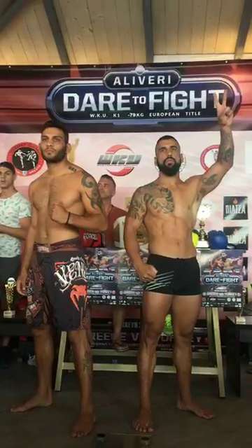 Ολοκληρώθηκε πριν από λίγα λεπτά, στο Baluse, στον Κάραβο Αλιβερίου, η ζύγιση των 8 Ελλήνων και Τούρκων αθλητών που θα συμμετάσχουν αύριο στα main event του Aliveri Dare to Fight: Greece VS Turkey.