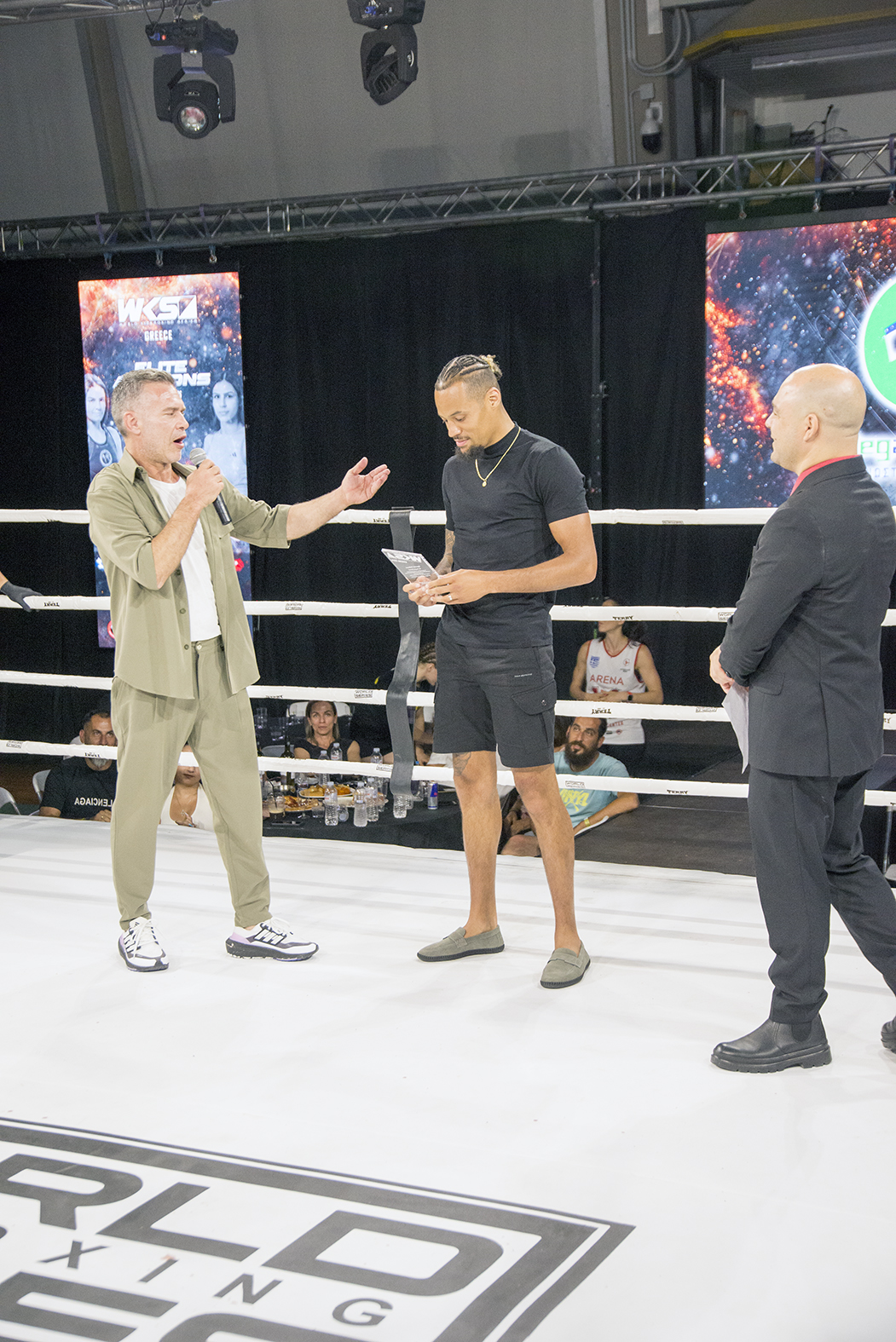 Εμφάνιση: Εντυπωσίασε με πιεστικό παιχνίδι και σωστή διαχείριση της απόστασης. Ο διαιτητής διέκοψε τον αγώνα μετά από 3 μετρήματα, μέσα σε αποθέωση του κοινού.